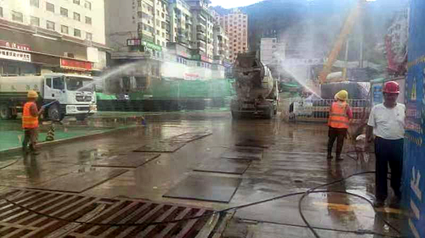 為確保大氣污染防治工作落到實處,增強項目參建人員大氣污染治理防范意識,保證項目建設順利進行,四公司主要負責人與蘭州市環(huán)保局、城市執(zhí)法局、質監(jiān)站等單位溝通協(xié)調,結合項目地處鬧市區(qū)實際,制定大氣污染防治措施,并組織項目部全體人員召開大氣污染整治專題會議,對大氣污染防治工作的相關要求進行部署和落實。一是全面落實公司各項決策部署和子(分)公司《關于進一步加強施工大氣污染管理工作的通知》要求,提高思想認識,轉變工作作風,落實工作職責,切實抓緊抓實抓好各項措施落實落細,以實際舉措防治大氣污染,確保空氣質量持續(xù)改善。二是加強宣傳引導,發(fā)揮黨建工作引領作用,提高政治站位,緊盯目標任務,突出重點工作,堅持目標導向,劃分責任區(qū),責任到人,強化考核問效,為安全文明施工生產提供保障。三是狠抓揚塵治理。各參建員工要牢固樹立大局意識,責任意識、擔當意識,嚴格落實“六個百分百”要求,齊抓共管,加強施工現(xiàn)場、道路揚塵管控,督促各施工作業(yè)隊文明施工,嚴格落實各項防塵抑塵降塵措施,促進項目建設順利推進。四是加大揚塵污染治理物資設備的投入。項目部在施工周邊居民樓上安裝噴淋系統(tǒng)噴霧降塵,施工現(xiàn)場發(fā)泡機噴水抑制塵土飛揚,有效減少揚塵污染。施工場區(qū)道路、加工區(qū)地面進行硬化處理,裸露場地進行全覆蓋,鉆孔泥漿自然脫水固化后及時使用封閉式運輸車輛外運。車輛出入口安裝車輛自動沖洗裝置,專人負責,檢查車輛外部、底盤、輪胎處不得沾有污物和泥土,嚴禁車輛帶泥上路。五是加大巡查和預防力度。項目部安排專人加強對揚塵污染源的巡查和檢測,不定時進行場地清潔、灑水,及時處理揚塵污染問題。