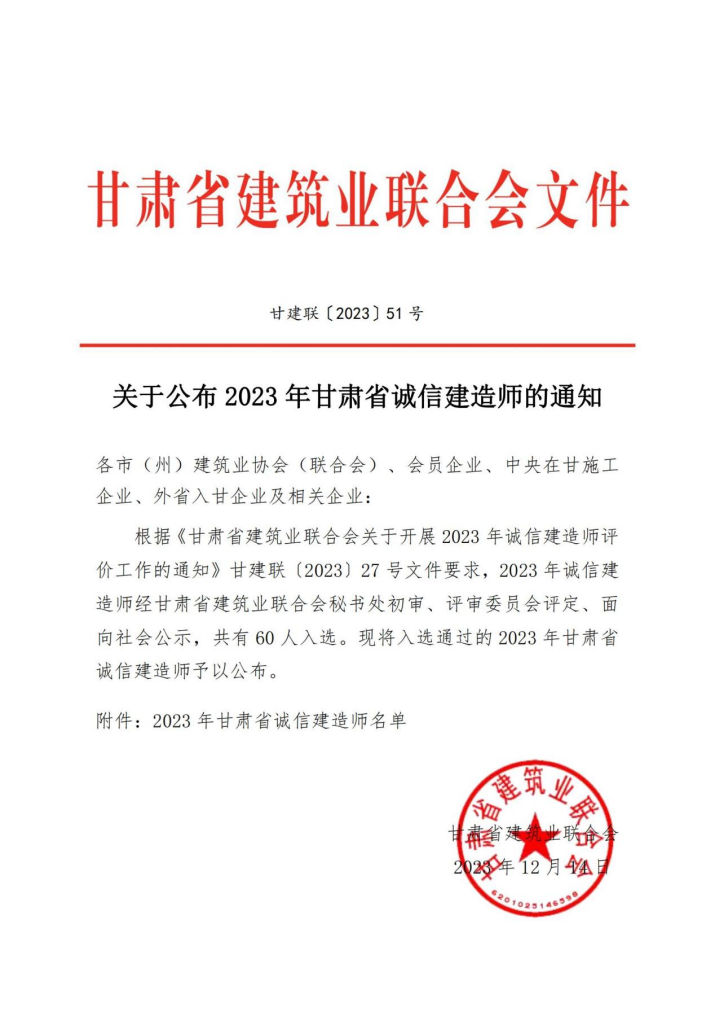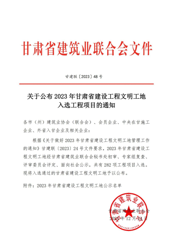 近日,甘肅省建筑業協會發布2023 年甘肅省建設工程文明工地和甘肅省誠信建造師評選結果,甘肅文旅集團旗下子公司蘭州市政公司承建的渭源縣渭河源景區旅游服務能力提升項目、蘭州石佛溝生態旅游示范區一期工程、熱電聯產城市一次供熱管網建設項目(西固區)、甘肅瑪雅冰川礦泉水股份有限公司年產18萬噸天然水開發項目、張掖平山湖大峽谷景區旅游基礎設施建設項目、涼州區職業中等專業學校 學生住宿樓建設項目6項工程獲得2023年“甘肅省建設工程文明工地”榮譽稱號。王峰、李方乾、王立學、馮力爭、劉雙亮5名同志獲得“甘肅省誠信建造師”榮譽稱號。