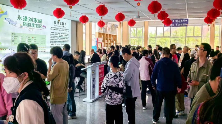 五一”期間的永靖劉家峽旅游度假區可謂人山人海,景區各景點吸粉無數,成為熱門旅游打卡點:黃河花堤的郁金香花海香氣馥郁、太極島山水相依、劉家峽恐龍館再現古生物的輝煌……游客們熱情高漲,接踵而至。據統計,度假區假期第二日接待人數突破3萬人次,營業收入突破34萬元,實現顯著增長,再創新高。