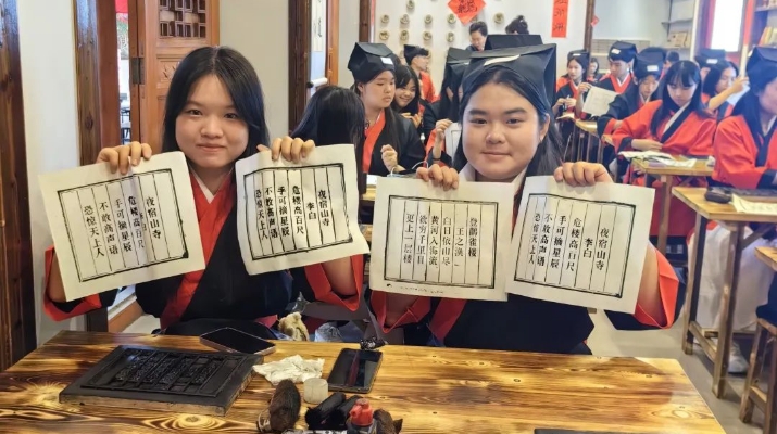 在河口古鎮(zhèn)的國(guó)學(xué)活字印刷研學(xué)館,港澳青少年們親自動(dòng)手體驗(yàn)了古代的活字印刷術(shù)。他們小心翼翼地?cái)[放著字模,用墨汁輕輕刷過,再將宣紙覆蓋其上,輕輕一壓,一幅幅唐詩(shī)便躍然紙上。他們齊聲用粵語朗誦了“憫農(nóng)”“春曉”“相思”等經(jīng)典唐詩(shī),不僅領(lǐng)略了民間藝術(shù)的獨(dú)特魅力,更在實(shí)踐中感受到了中華文化的博大精深。