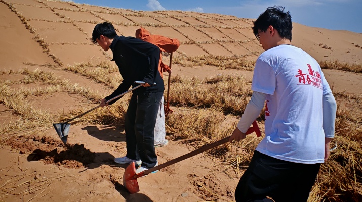 活動期間,同學(xué)們還體驗(yàn)了沙畫藝術(shù)創(chuàng)作,觀看了八步沙治沙專題教育片,并積極參與草方格壓沙實(shí)踐,親手為荒漠治理貢獻(xiàn)力量。通過理論與實(shí)踐的結(jié)合,隊(duì)員們深刻領(lǐng)悟了“困難面前不低頭、敢把沙漠變綠洲”的八步沙精神。