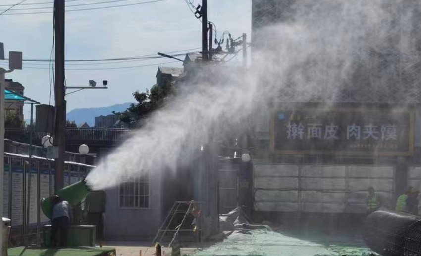 為確保大氣污染防治工作落到實處,增強項目參建人員大氣污染治理防范意識,保證項目建設(shè)順利進行,四公司主要負(fù)責(zé)人與蘭州市環(huán)保局、城市執(zhí)法局、質(zhì)監(jiān)站等單位溝通協(xié)調(diào),結(jié)合項目地處鬧市區(qū)實際,制定大氣污染防治措施,并組織項目部全體人員召開大氣污染整治專題會議,對大氣污染防治工作的相關(guān)要求進行部署和落實。一是全面落實公司各項決策部署和子(分)公司《關(guān)于進一步加強施工大氣污染管理工作的通知》要求,提高思想認(rèn)識,轉(zhuǎn)變工作作風(fēng),落實工作職責(zé),切實抓緊抓實抓好各項措施落實落細,以實際舉措防治大氣污染,確保空氣質(zhì)量持續(xù)改善。二是加強宣傳引導(dǎo),發(fā)揮黨建工作引領(lǐng)作用,提高政治站位,緊盯目標(biāo)任務(wù),突出重點工作,堅持目標(biāo)導(dǎo)向,劃分責(zé)任區(qū),責(zé)任到人,強化考核問效,為安全文明施工生產(chǎn)提供保障。三是狠抓揚塵治理。各參建員工要牢固樹立大局意識,責(zé)任意識、擔(dān)當(dāng)意識,嚴(yán)格落實“六個百分百”要求,齊抓共管,加強施工現(xiàn)場、道路揚塵管控,督促各施工作業(yè)隊文明施工,嚴(yán)格落實各項防塵抑塵降塵措施,促進項目建設(shè)順利推進。四是加大揚塵污染治理物資設(shè)備的投入。項目部在施工周邊居民樓上安裝噴淋系統(tǒng)噴霧降塵,施工現(xiàn)場發(fā)泡機噴水抑制塵土飛揚,有效減少揚塵污染。施工場區(qū)道路、加工區(qū)地面進行硬化處理,裸露場地進行全覆蓋,鉆孔泥漿自然脫水固化后及時使用封閉式運輸車輛外運。車輛出入口安裝車輛自動沖洗裝置,專人負(fù)責(zé),檢查車輛外部、底盤、輪胎處不得沾有污物和泥土,嚴(yán)禁車輛帶泥上路。五是加大巡查和預(yù)防力度。項目部安排專人加強對揚塵污染源的巡查和檢測,不定時進行場地清潔、灑水,及時處理揚塵污染問題。